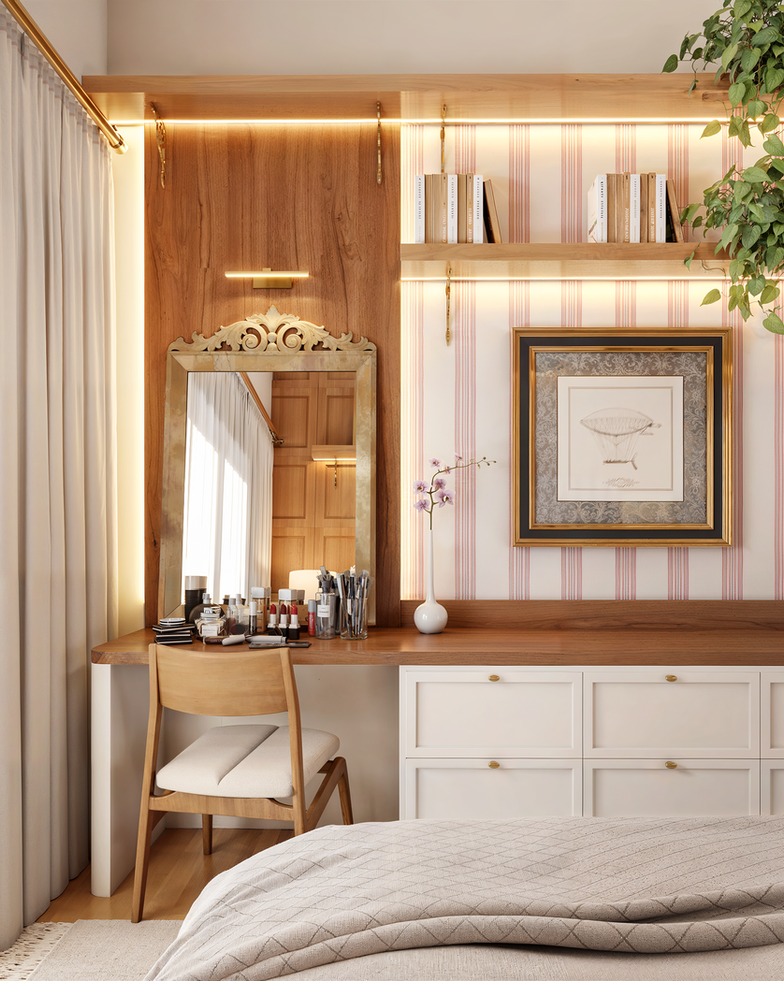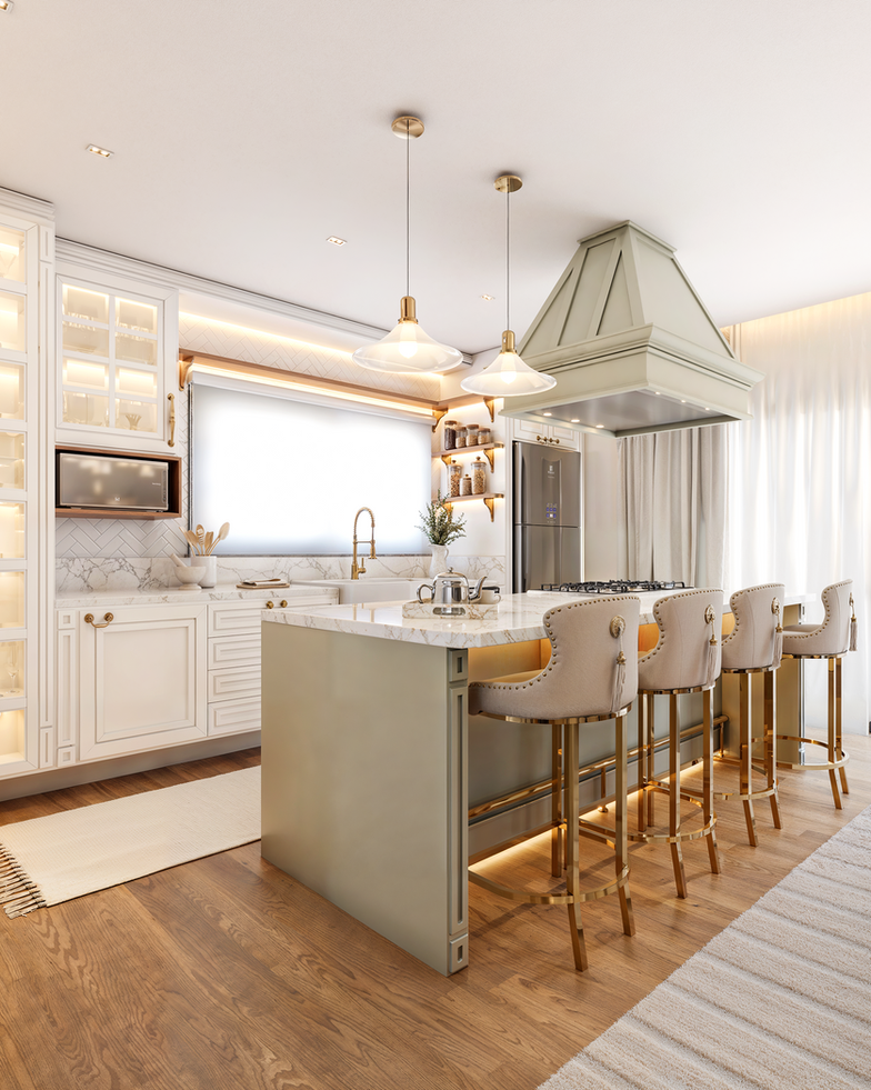 "Este projeto de interiores traduz a serenidade das cores claras em harmonia com a força de elementos clássicos e linhas contemporâneas. Em cada ambiente, tradição e modernidade se encontram com sutileza, criando uma atmosfera sofisticada, acolhedora e perfeitamente integrada ao charme da Serra Gaúcha."