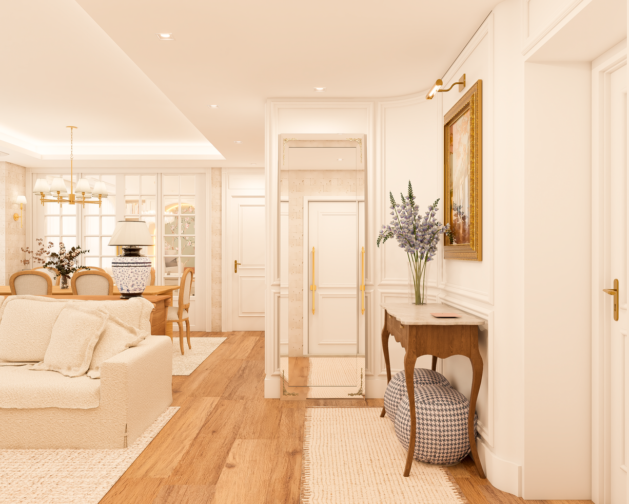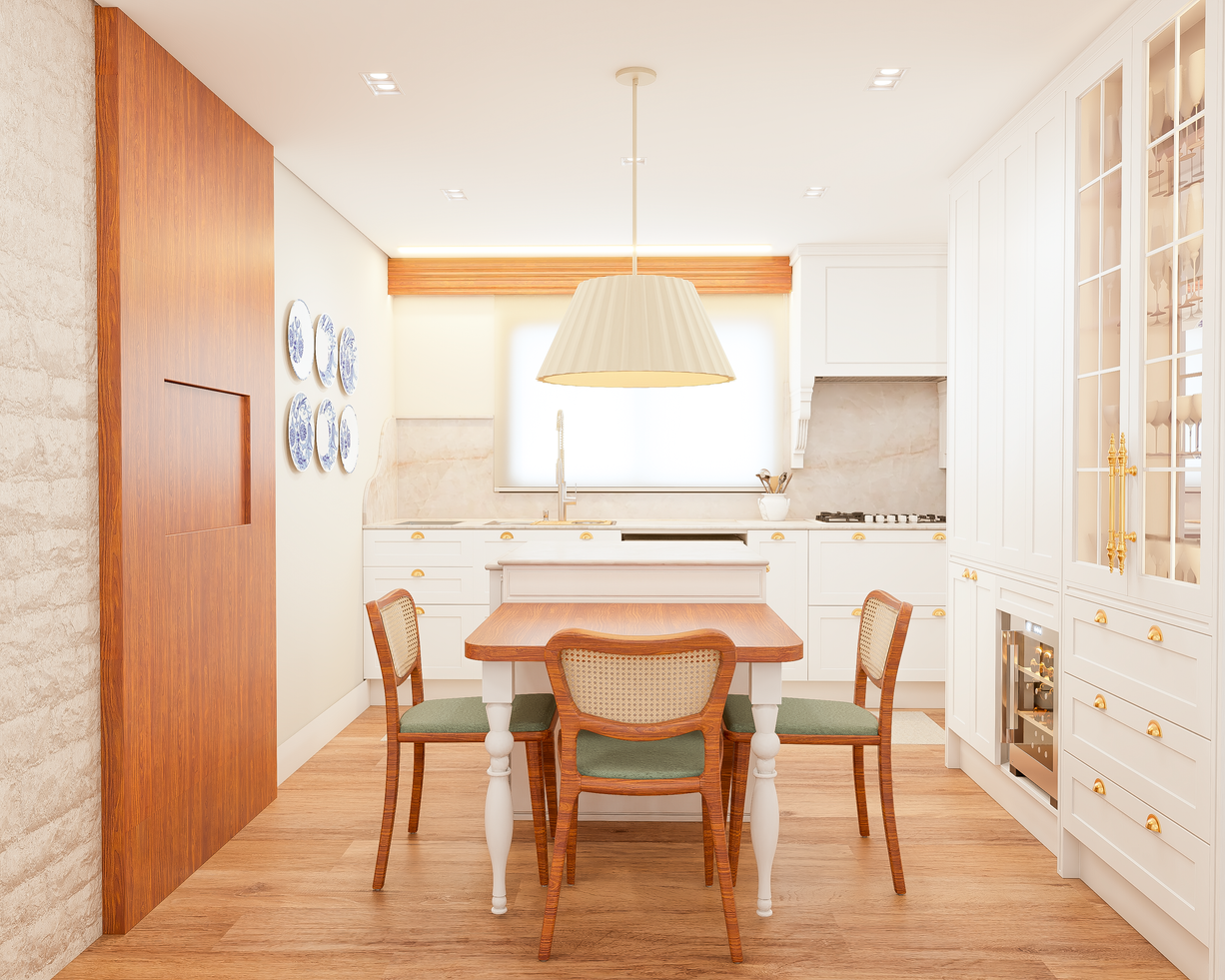 "Este apartamento clássico revela-se em tons claros e delicados, onde cada detalhe foi pensado para transmitir leveza e harmonia. A iluminação natural percorre os ambientes, realçando a sofisticação das linhas tradicionais e a sutileza das cores suaves. O resultado é um espaço acolhedor, refinado e atemporal, que traduz a beleza do clássico em sua forma mais leve e luminosa."