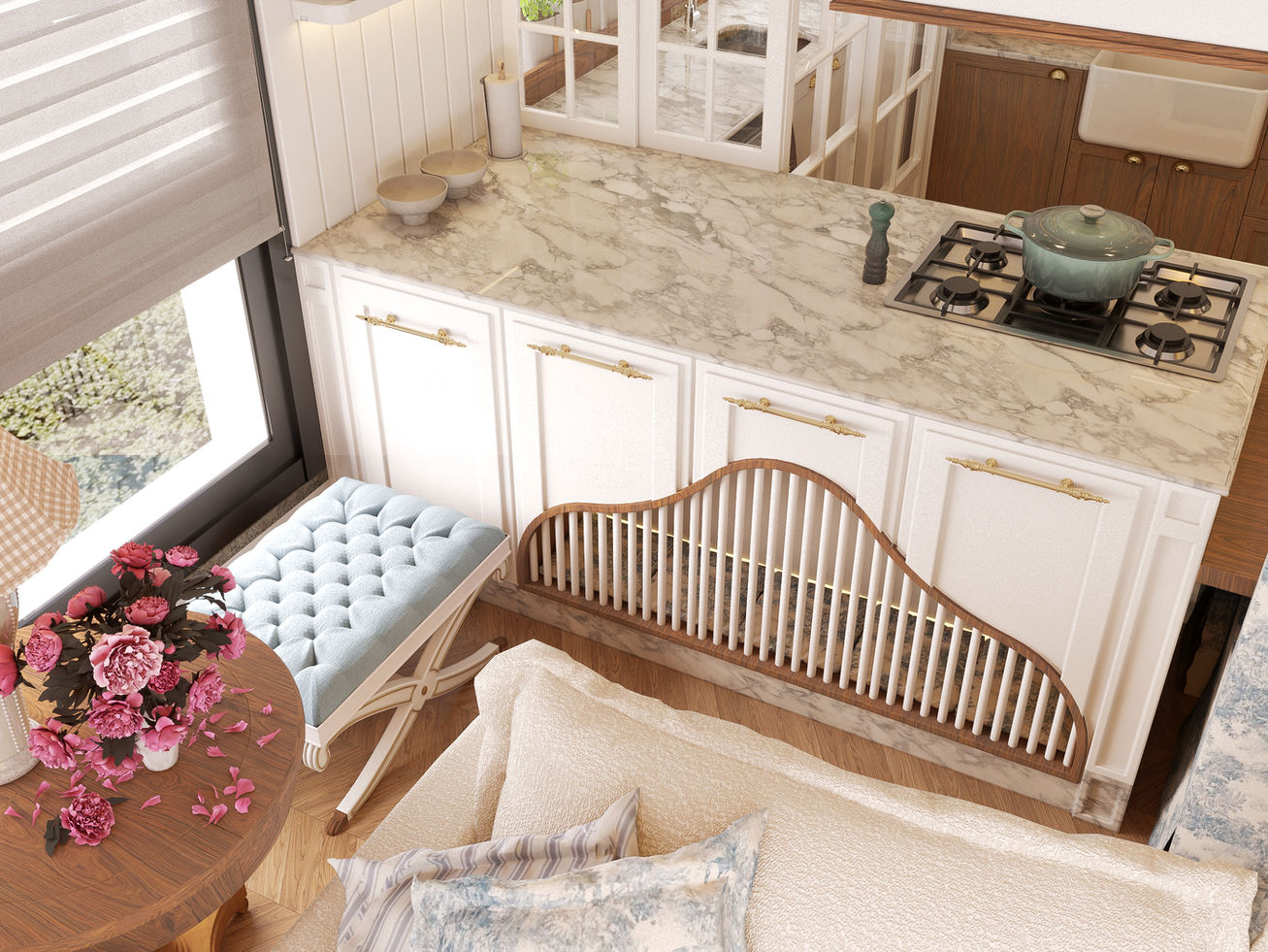"Este loft mostra que elegância não depende de tamanho — e nem de ser convencional. Em meio ao charme do estilo clássico e ao aconchego das soluções inteligentes, surge uma moradora peculiar: uma coelha cheia de graça, que torna o ambiente ainda mais autêntico e delicado. O espaço compacto ganha alma e personalidade, transformando-se em um refúgio encantador, onde sofisticação e afeto convivem lado a lado."